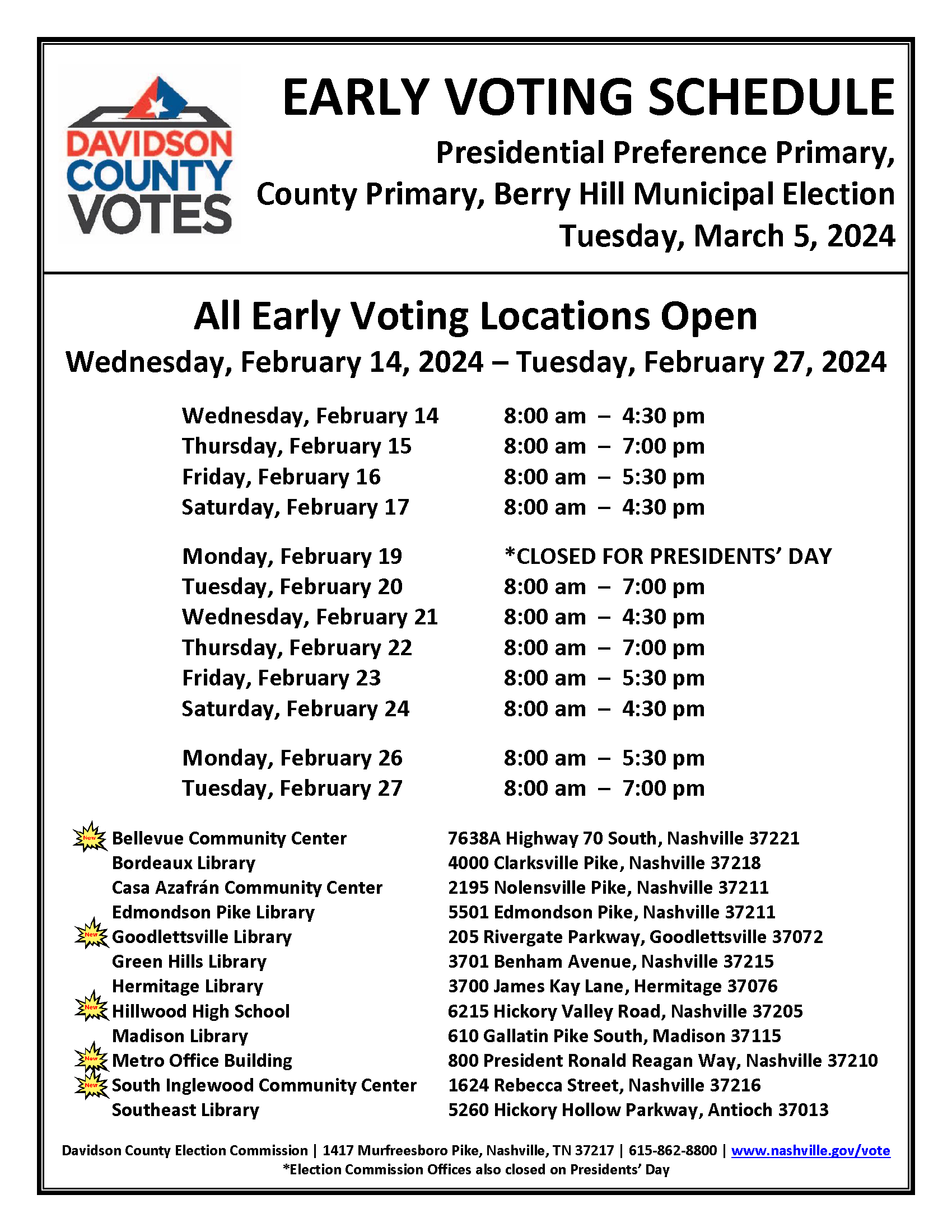 Davidson County Holiday Schedule 2024